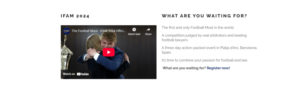 The Football Moot is a unique annual competition in Platja d’Aro, Spain, where law students and young professionals simulate football arbitration cases. It combines legal challenges with networking in a scenic coastal setting.